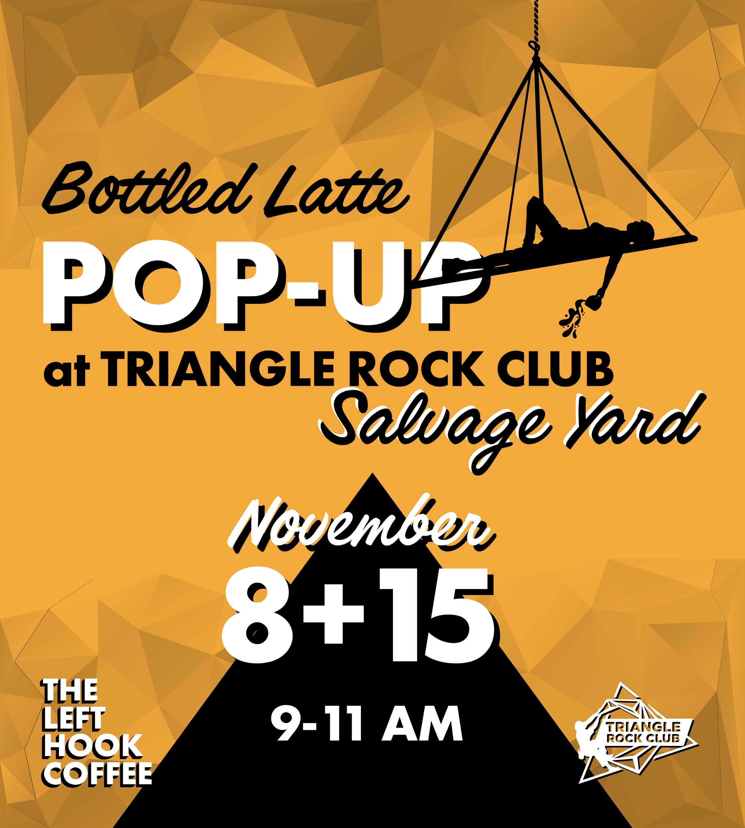 The Left Hook Coffee is bringing bottled lattes to Triangle Rock CLub at Salvage Yard (2330 Salvage Yard Dr, Raleigh, NC 27604). Let’s get rockin!